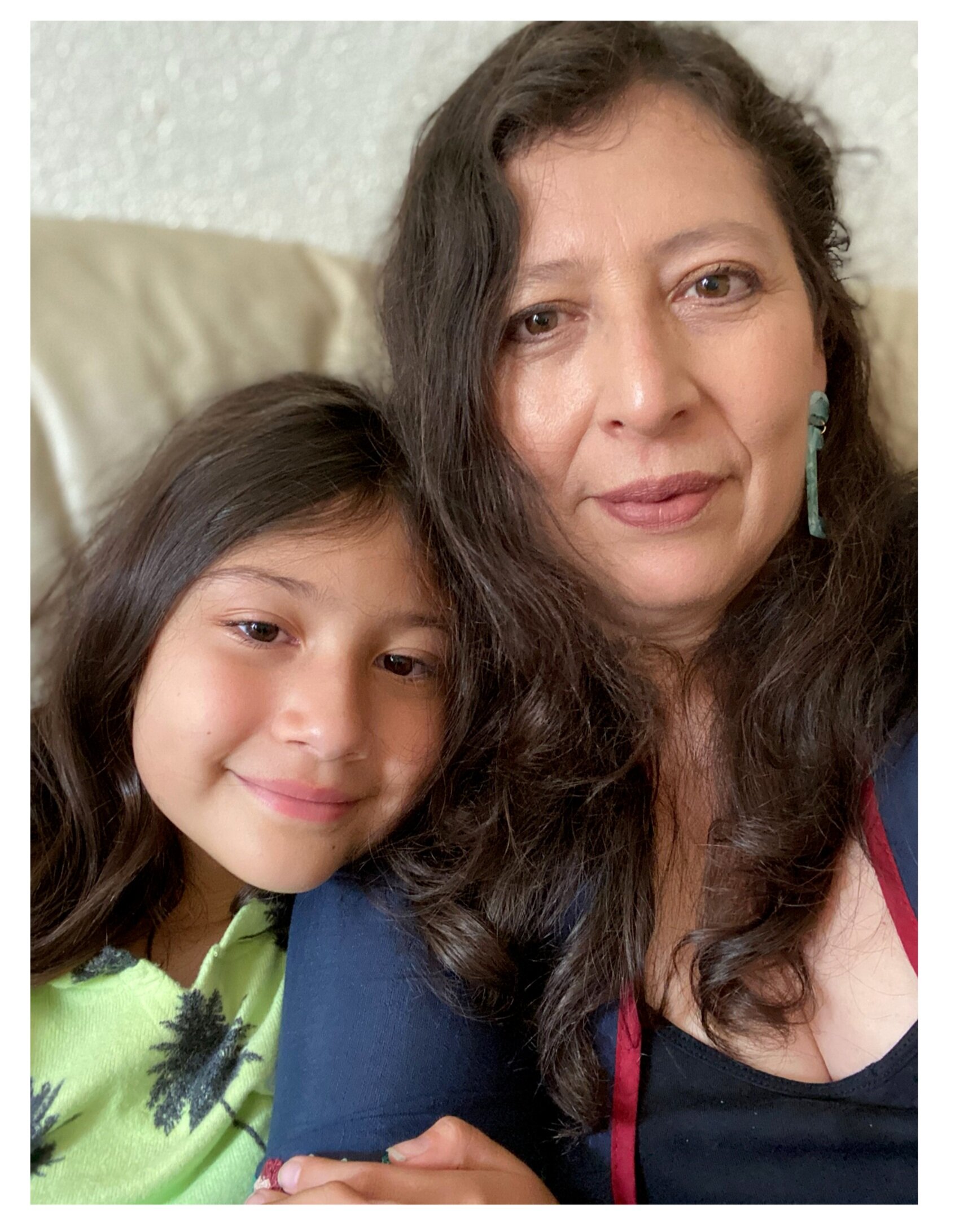 Tengo dos hijos mayores. Madeline está conmigo. Mi hijo se movió. Esta tiene su esposa y va a tener su bebe. Y tengo Lyla, que tiene ocho años. Con Madeline, vive pero ella trabaja para Google. Con Lyla … es cerrado las escuelas, y ha sido un poco el cambio estar en casa. Explicara Lyla lo de COVID y de las precauciones que tenemos que tomar. Pero cuando una familia está junta y todos en casa al principio, estamos como en shock. … Pues este Lyla en la casa con nosotros, este lo maneja bien. De levantarse, están con ella como todas familias. La casa es un poquito amplia. Tenias sus pátinas. Salí a fuera y caminamos un poquito. Trato de manejarlo de esa manera y después con sus clases y sus tareas … Pero, sí creo que no ha sido fácil, pero Lyla gracias a Dios es una niña sana.